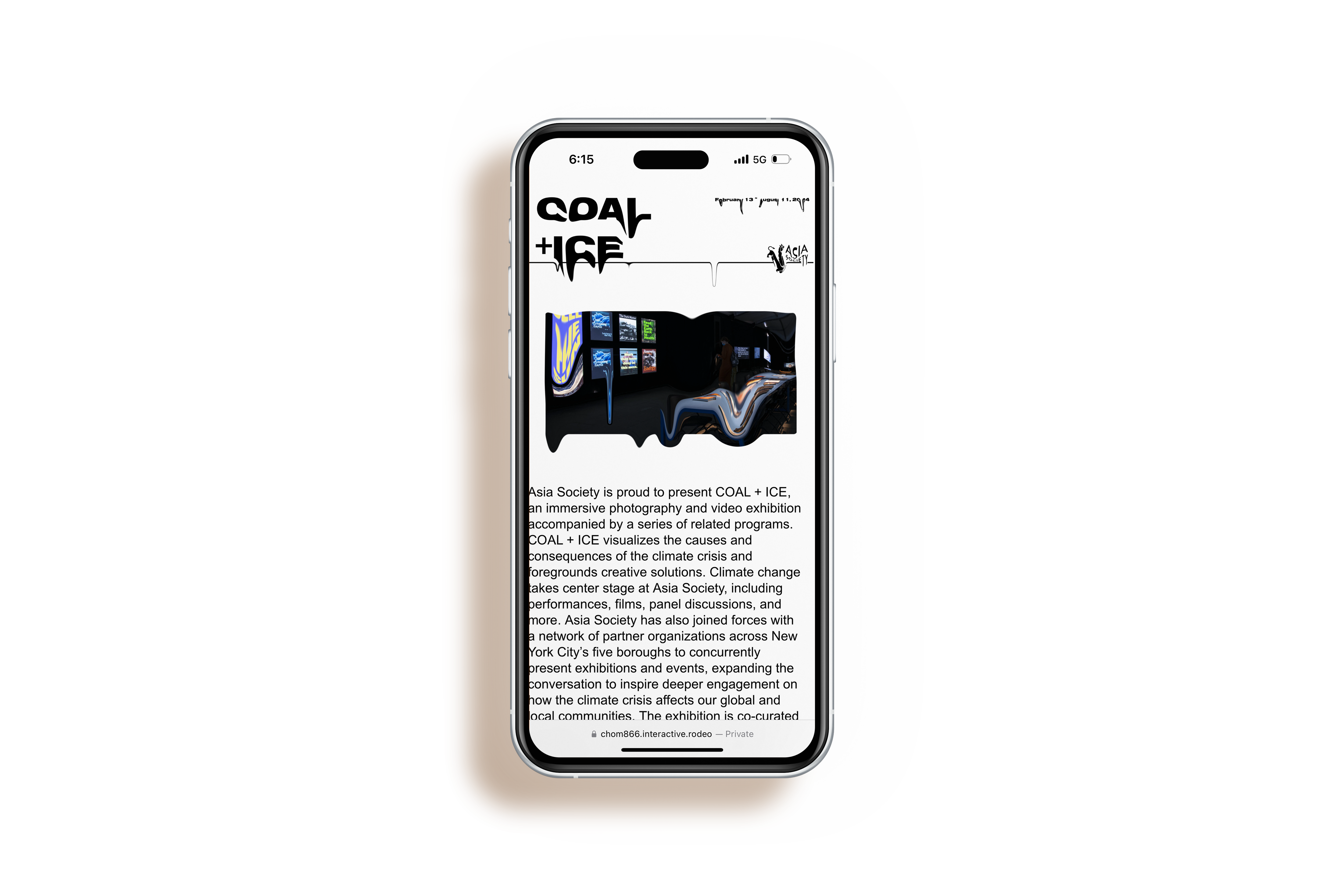 “Coal + Ice” is a groundbreaking web design project inspired by the event of the same name hosted by the Asian Society. This project ingeniously utilizes a temperature API to visually represent the effects of global warming. The concept behind “Cole + Ice” is both simple and profound. As the temperature rises, the website begins to melt, providing users with a visceral and interactive representation of the impact of climate change.